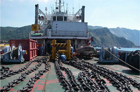 主に防衛省関連機関と関連企業を契約相手方として、各種試験支援のための必要船舶の傭船および試験器材等の艤装・洋上設置等を実施しております。