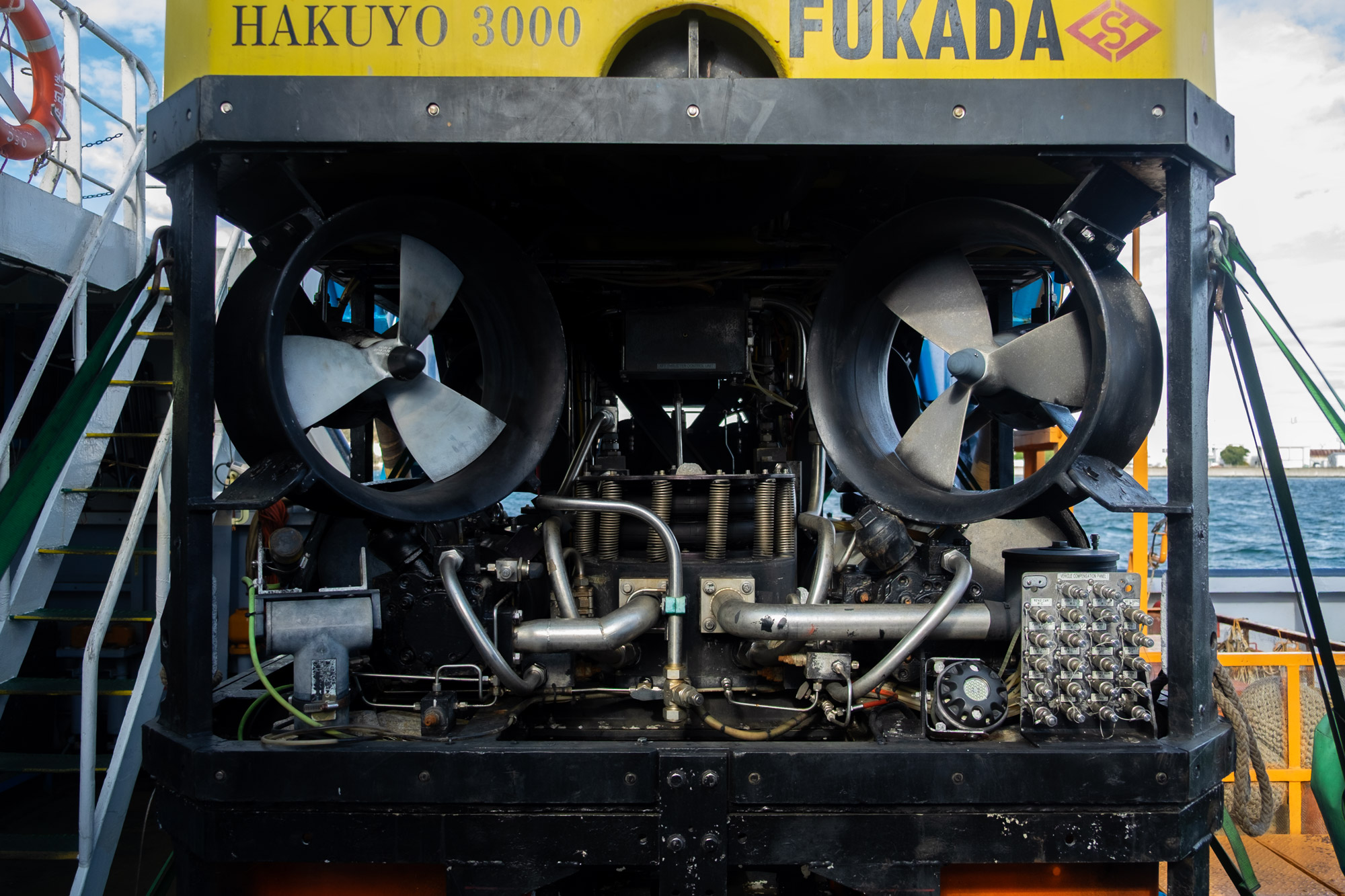| 主巻定格荷重 | ハイビジョンカメラ、CCDカメラ、LEDライト、スキャニングソナー、コンパス、深度計、高度計、トランスポンダー、レスポンダー、ラジオビーコン、フラッシャー、ドップラー速度ログ、サンプルバスケット、CTD、ラインレーザー、スラープガン |