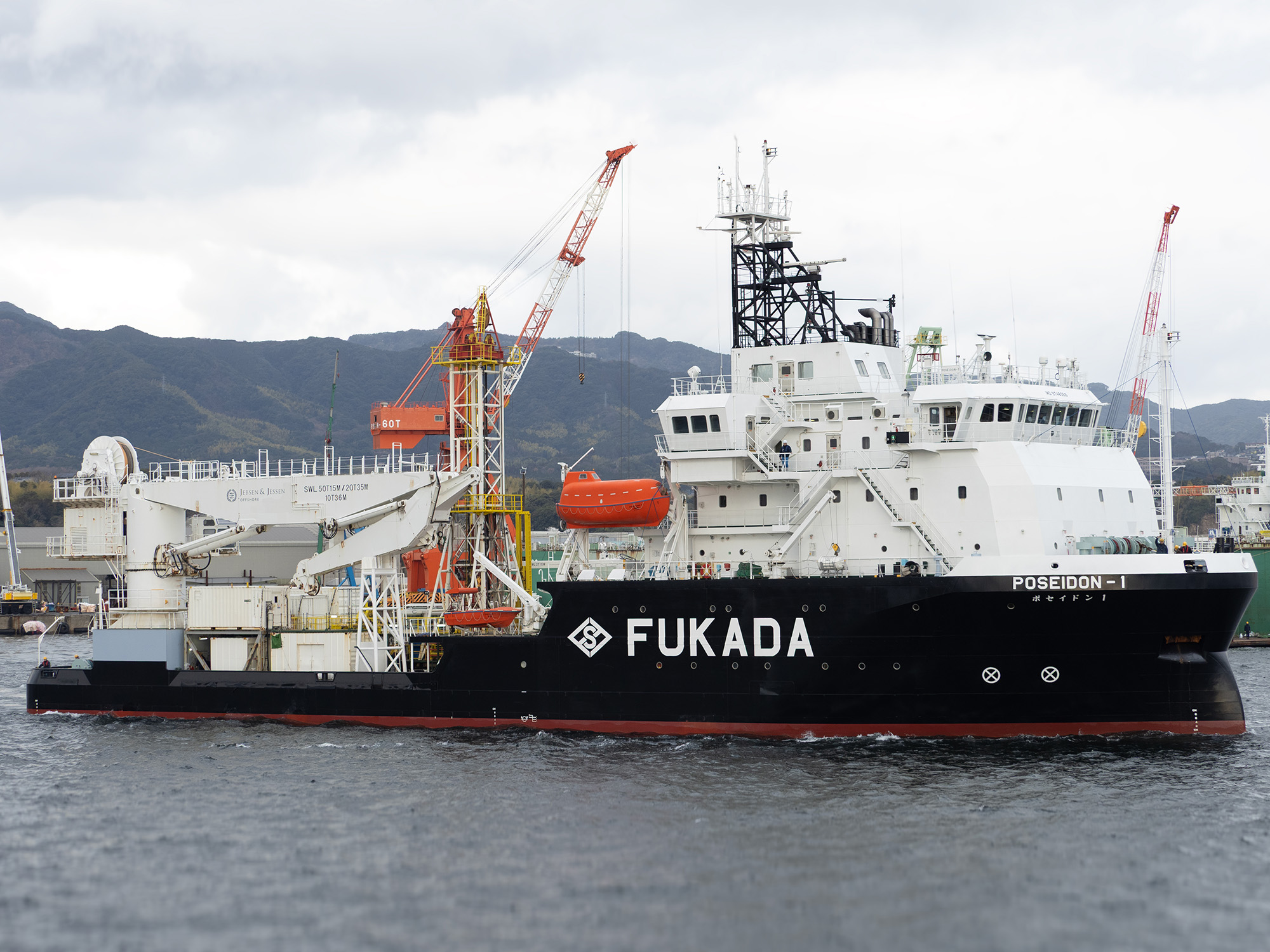 | 作業甲板 | 面積:650㎡、甲板載貨重量:1,000t、甲板強度:10.0t/㎡ |